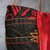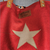 Le tissu extérieur est composé de cuir de vachette rouge irisé et de jean recyclé, les anses sont en cuir de collet noir et l'étoile issu de chute cuir.